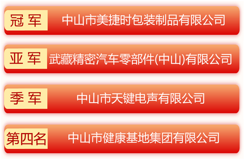 中山市美捷時包裝制品有限公司工會副主席范燎源為季軍、第四名天鍵電聲代表隊、健康基地代表隊頒獎