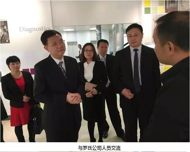 瑞士當(dāng)?shù)貢r(shí)間11月18日下午,中山市委書記薛曉峰率領(lǐng)中山市代表團(tuán)前往瑞士巴塞爾羅氏集團(tuán)考察,羅氏集團(tuán)政府事務(wù)負(fù)責(zé)人Mrs.Nathalie Stieger等熱情接待了代表團(tuán)一行。市委辦公室主任黃偉東、翠亨新區(qū)管委會(huì)主任賀暉、市商務(wù)局局長歐陽錦全、市外事僑務(wù)局局長馮金怡、火炬開發(fā)區(qū)黨工委副書記、管委會(huì)副主任孫宇紅、健康基地總經(jīng)理方迎等隨同考察。