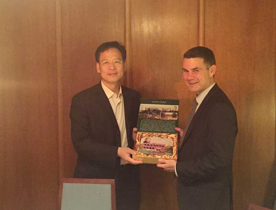 楊文龍副市長向terrain總經(jīng)理Andreas Dressler贈送孫中山畫像