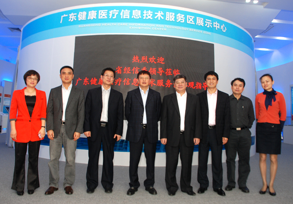3月30日,廣東省經(jīng)信委楊建初主任、蔡勇副主任在中山市副市長(zhǎng)馮煜榮的陪同下,來到廣東健康醫(yī)療信息技術(shù)服務(wù)區(qū)參觀。中山市經(jīng)信局局長(zhǎng)雷岳龍、中山市火炬開發(fā)區(qū)總經(jīng)濟(jì)師林偉強(qiáng)、國(guó)家健康基地總經(jīng)理方迎、副總經(jīng)理林霞陪同參觀。